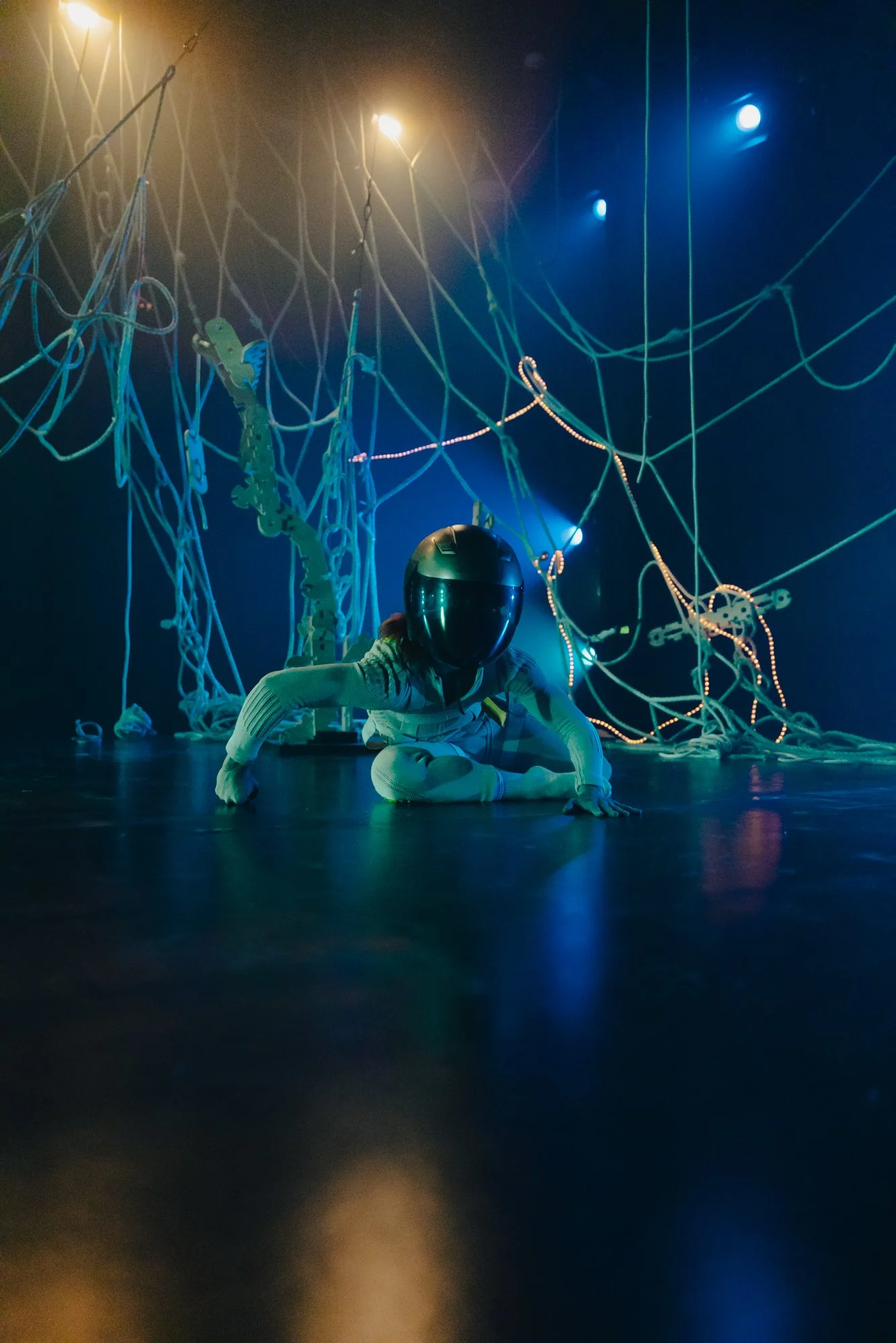 Les Noeuds de Gustav is a multidisciplinary work where dance is finely interwoven with music, a narrative and an interactive scenography.